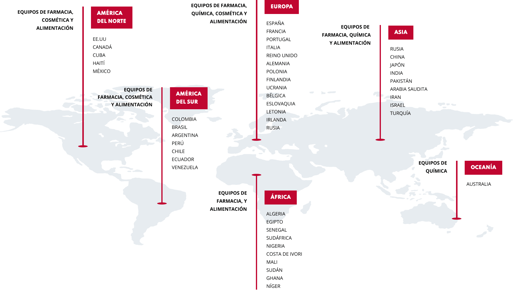 Desde nuestras instalaciones damos una total cobertura internacional. Distribuimos nuestra maquinaria por todo el mundo gracias a un equipo comercial preparado para ofrecer asesoramiento dondequiera que sea. Además, prestamos asistencia técnica en cualquier parte del mundo: nuestros técnicos se desplazan allí dónde se nos necesita, ya sea para la puesta en marcha de nuevos equipos como para solucionar posibles incidencias.